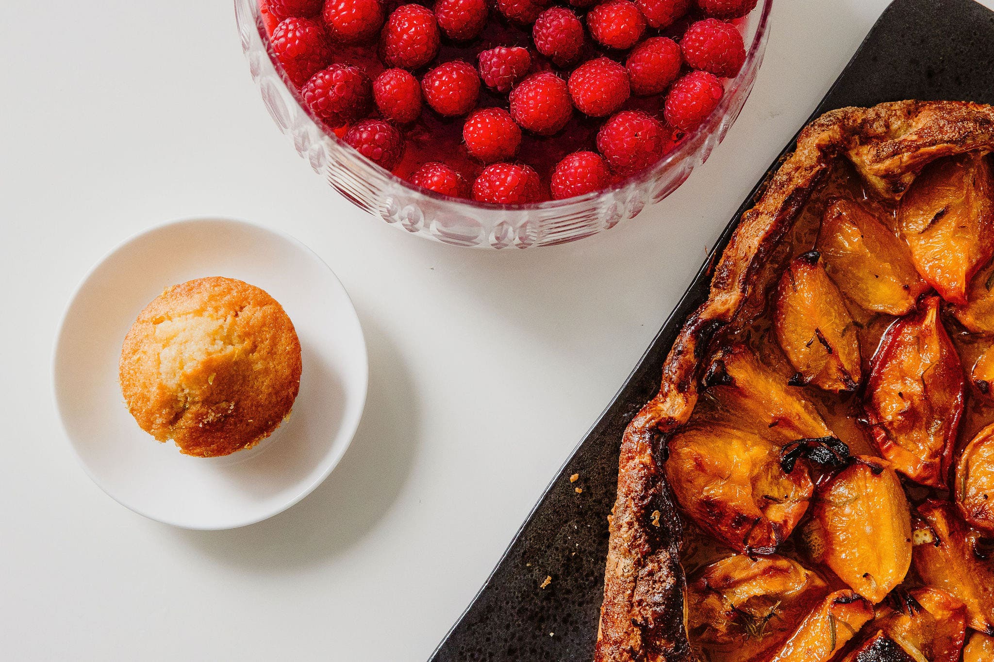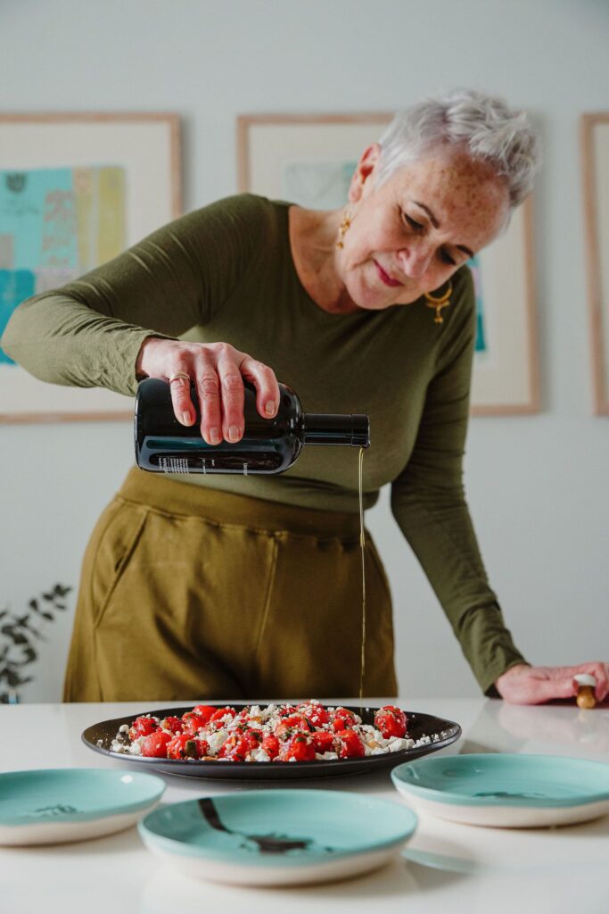 Some of our favourite dishes highlight this philosophy perfectly including: Dukkah crusted feta with heritage tomatoes and melon salad Charred sugar snap, pomegranate and couscous salad Kale and tahini caesar salad with za’atar, chickpeas and roasted grapes Chermoula-marinated sea bass stuffed with olives and preserved lemon Tahini chicken schnitzel Sweet and salty cheesecake with cherries and crumble Peach, rosemary and lime galette